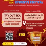 Semarak Prestasi, Asah Potensi, Tingkatkan Keimanan! SMP Putri Al Irsyad Al Islamiyyah Malang kembali menghadirkan ajang kompetisi bergengsi yang ditunggu-tunggu: Creative Islamic Students Festival 2026, sebuah wadah untuk mengembangkan kemampuan akademik, kreativitas, dan kecintaan pada Al-Qur’an bagi para siswi tingkat Read More …